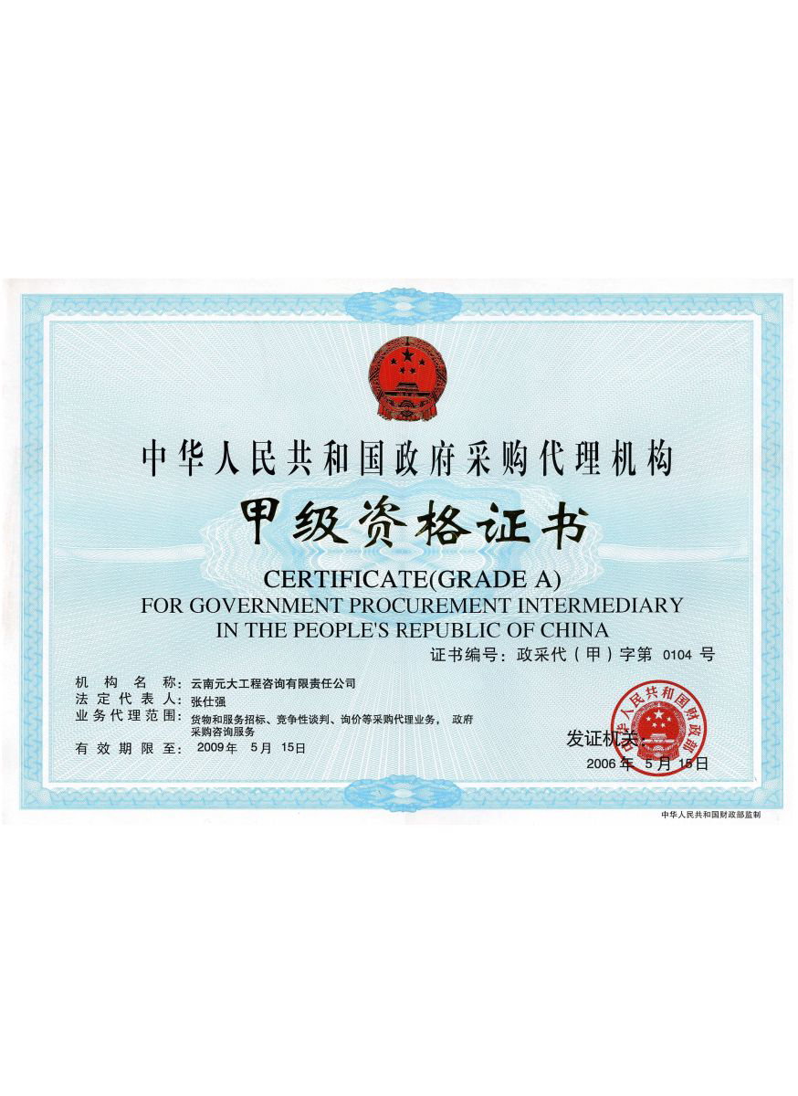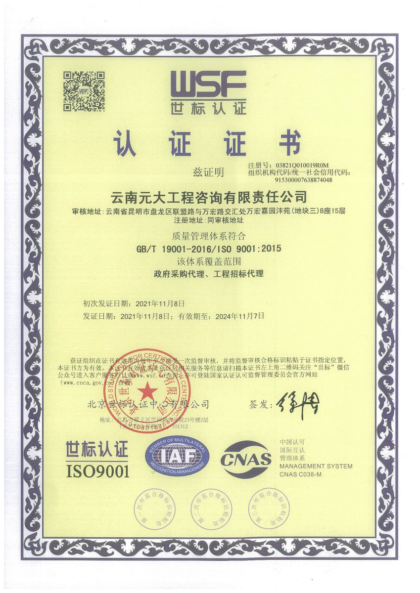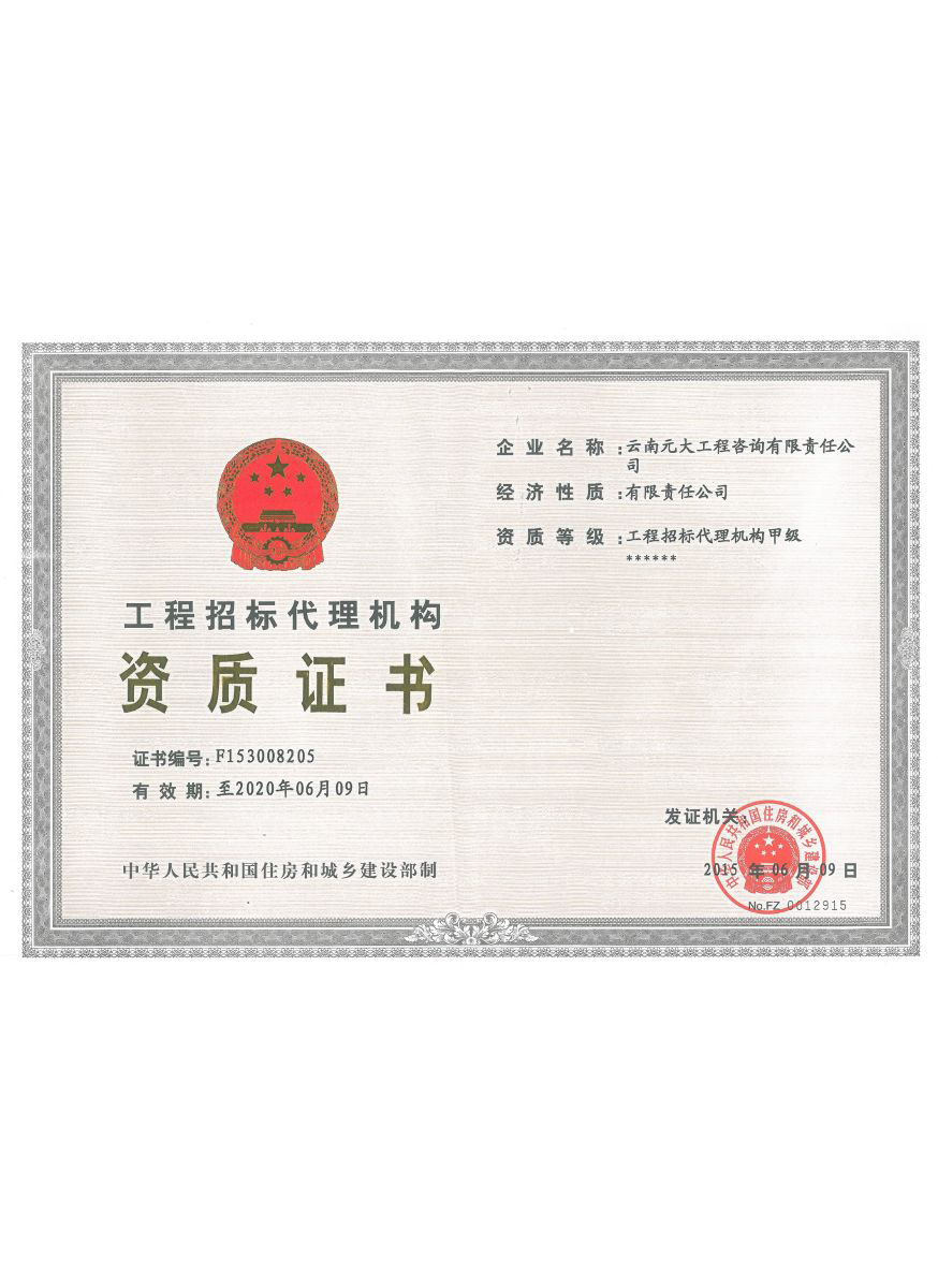 公司是云南省招標(biāo)投標(biāo)行業(yè)協(xié)會(huì)會(huì)長單位,現(xiàn)為云南省住建廳信用評(píng)級(jí)招標(biāo)代理機(jī)構(gòu)AAA級(jí)單位。公司先后榮獲住建部頒發(fā)的“工程招標(biāo)代理機(jī)構(gòu)甲級(jí)資質(zhì)證書”、財(cái)政部頒發(fā)的“政府采購代理機(jī)構(gòu)甲級(jí)資格證書”,并在財(cái)政部及中國政府采購網(wǎng)“政府采購代理機(jī)構(gòu)名單”登記備案、獲得國家發(fā)展改革委頒發(fā)的“中央投資項(xiàng)目招標(biāo)代理機(jī)構(gòu)甲級(jí)資格證書”、商務(wù)部頒發(fā)的“國際招標(biāo)機(jī)構(gòu)預(yù)乙級(jí)資格證書”、機(jī)電產(chǎn)品國際招標(biāo)電子交易平臺(tái)頒發(fā)的“機(jī)電產(chǎn)品國際招標(biāo)電子交易證書”、國家國防科技工業(yè)局頒發(fā)的“軍工涉密業(yè)務(wù)咨詢服務(wù)安全保密條件備案證書”。公司已通過ISO9001:2015質(zhì)量管理體系認(rèn)證、ISO14001:2015環(huán)境管理體系認(rèn)證、ISO45001:2018職業(yè)健康安全管理體系認(rèn)證。納稅信用評(píng)價(jià)已連續(xù)三年被評(píng)為A級(jí)......